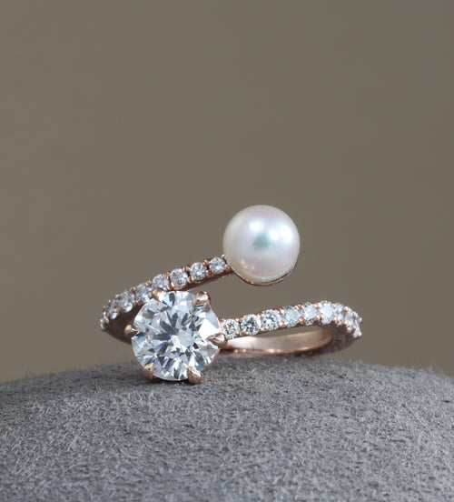 Pearl Diamond TOI ET MOI Open Ring